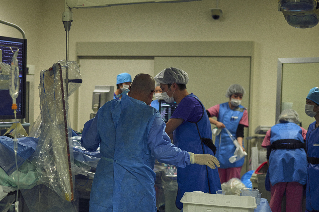 関西ろうさい病院に勤務している時、病院の近くの官舎に住んでいたが、近医の救命センターにAMIが運ばれると、その病院ではPCIができないので、その病院から直接自宅に電話がかかってきていた。電話を受け、救急車の音を聞きながら病院にいき、2階にあるカテ室の電源を入れ物品の準備をして、搬送されてくる患者様を1階入り口でストレッチャーを準備して待機し、そのままカテ室に移動。消毒など患者様の準備をして実際の治療を行い、その後ICUに移動させ、資材伝票を整理し、カテ室の最後の掃除まで、全て1人で行っていた。非常に大変ではあったが、それすら苦に感じないほどPCIにのめりこんでいった。詰まっているところが拡がることが単純に面白かった。