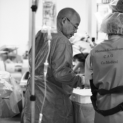 それからは精力的にCAG、そしてPCIをはじめた。そうすると院内には、敵もできたが味方もできた。特に事務長の理解があり予算をつけてくれたおかげで、シネ装置などカテーテル室を整備することができた。しかし人員的なことへの協力はなかったので、コメディカルも含めスタッフの教育をしながら、そして心臓外科も設置し、PCIを行う体制を築き上げた。当時、加藤修先生、鈴木孝彦先生、故玉井秀男先生、故光藤和明先生方が見学にくる程、PCIにおいては一番多くの症例を行うまでの病院になった。